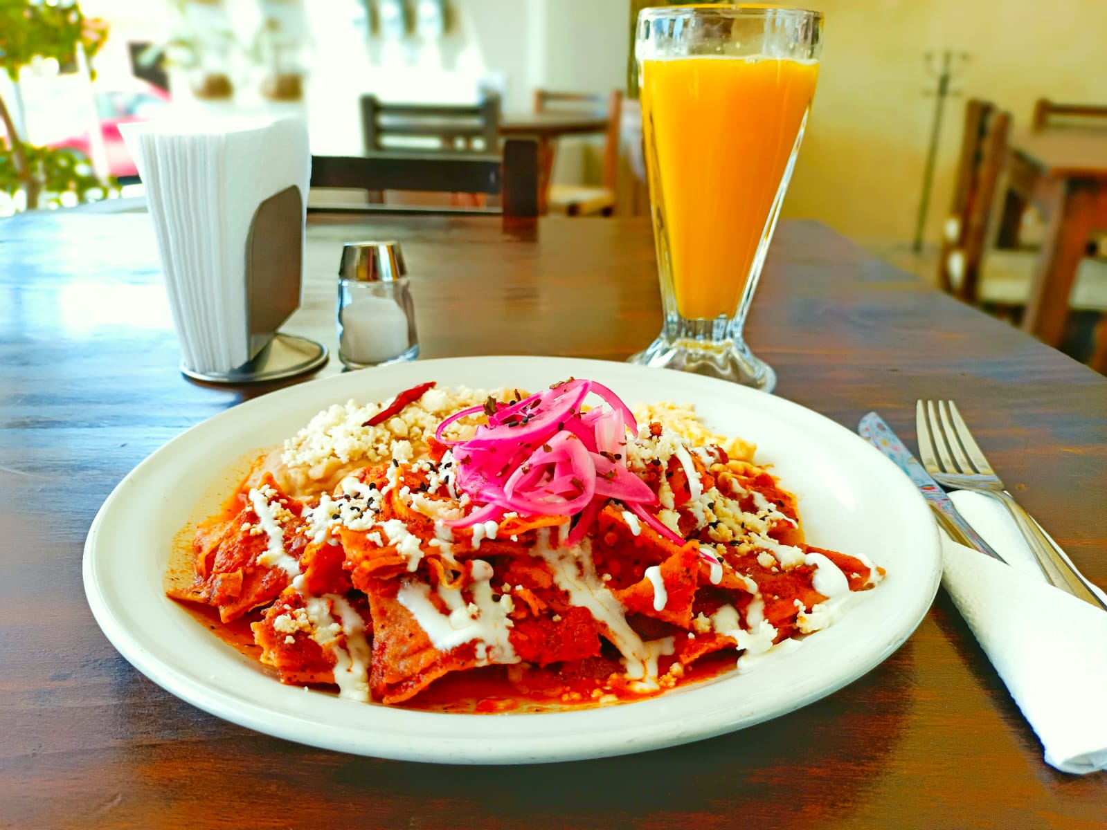 Rojos, verdes y divorsiados. Acompañados con frijoles refritos.